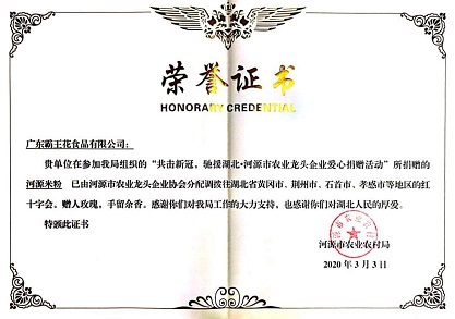 公司始終堅持“用良心打造放心食品,以責任贏得社會尊重”的理念,熱心社會公益事業(yè),帶動農(nóng)戶增產(chǎn)增收,積極回報社會——截止2022年底,先后為河源市新人民醫(yī)院、河源職業(yè)技術(shù)學(xué)院教學(xué)樓、東源縣東江中學(xué)、東源縣燈塔中學(xué)建設(shè)、河源“6.20”洪災(zāi),汶川“5.12大地震”、“6.30廣東扶貧濟困日”等各項公益事業(yè)捐款捐物達7000多萬元,先后資助600名優(yōu)秀貧困學(xué)子完成學(xué)業(yè),累計安排1000多名下崗工人和退伍軍人再就業(yè),以“公司+基地+農(nóng)戶”的形式直接帶動10000多戶農(nóng)戶增產(chǎn)增收,各種善舉贏得了社會各界的高度好評。