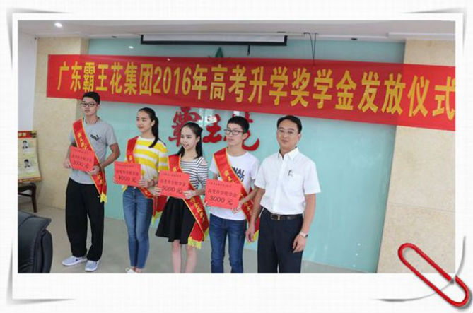 自2005年,廣東霸王花集團成立“員工子女高考升學獎學金”項目。截止今年,已11個年頭,共累計已發放助學、獎學金500多萬元,資助了考上大學、家庭貧困的孩子約有300多名。8月29日,對于集團公司來講,是一個激動的日子,而對于集團員工的子女今年考上大學的4個孩子是一個難忘感恩的日子。